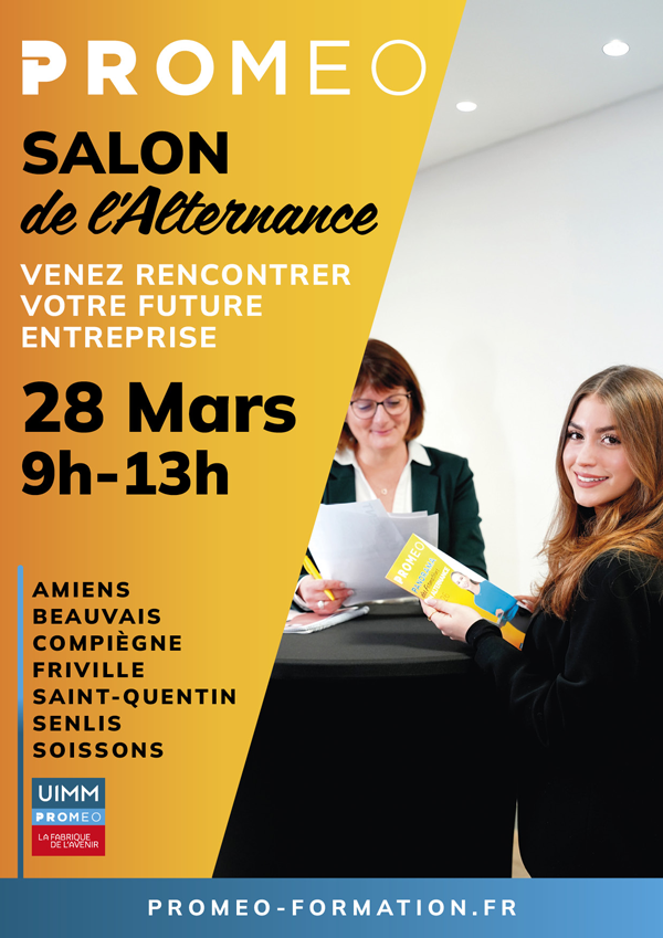 PROMEO organise son Salon de l’Alternance le samedi 28 mars 2026 de 9h à 13h dans ses centres à Amiens - Beauvais - Compiègne - Friville -Saint-Quentin - Senlis - Soissons.
